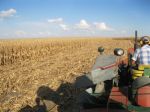 I was out today (10-10-10) working on picking my own corn here in SW Minnesota and thinking of you guys having your corn picking day today by Ottumwa. I was there in spirit! Anyway, my son rode in the wagon for 1 round and took a few pictures. It was a very nice day - actually too hot for sitting in a mounted picker!