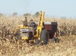 Thought I'd share some pics of my outfit (and myself) picking some ear corn for my neighbors cattle over the weekend. Picked about 800 bushels or so and got along pretty well until a friend of mine ran it for a few rounds and came back and jumped back on and couldnt keep it from pulling in the third 30" row! Thinkin I had lost my touch of keeping the 38" picker between the 30" rows, I kept going and the carnage kept getting worse, finally backed up and saw the right snout was pointing out at about a 45 degree angle! Went back to the truck and took it all the way off and ran the rest of the day with out it, got along really well. Anyways, enjoy!