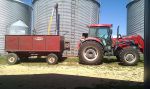 The barge box with white side boards, is a K and S, Jo Dandy 6x12 on a New Idea gear with Midwest hoist. I bought it from the dad of one of the guys I work with. He bought it new (along with an identical one that he had previously sold) when he started farming. It had been behind a 4020 with 237 since it was new. It has had very good care and will pull straight as an arrow at 45 mph.