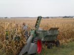 This photo is circa late '20s. My dad is the boy. He was born in 1919. The enlargement shows a load of hand-picked corn - looks pretty clean! When I was a boy, one of the first loads picked every year was on this wagon. Dad parked it in a corner of the pasture near the hog lot. One of my chores was to climb on that wagon and throw a hundred or so ears to the hogs every day. That chore helped me learn how to count and also run quickly to stay ahead of a large hungry herd! The foot rest on the front was a handy place for my brother and me to sit while pretending to drive a stage coach. Oh, and Durocs only - for more than 60 years.