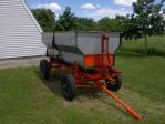 I did it again! I was at a local farm auction and bought a 7'x12' Heider barge wagon on a 8 ton MN running gear with a midwest hoist. I started the bidding at $250 and nickel and dimed it up to the hammer, $600. The box is in good shape---the wood needs a treatment of stain or varnish and the metal needs to be cleaned up, primed, and painted. The MN gear is tight!! One "balding" implement tire but the other three are in real good shape. This is the 3rd Heider barge wagon that I have seen this late summer only bring $600-$625. Is the barge wagon market softening?
