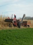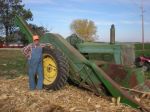On Saturday, October 22, Joe Bezdicek and I got together on the farm to have a little corn picking fun. Joe brought his JD 60 tractor with a JD 27 picker and I used an IH 656 with a NI 323 picker. We picked about 4 1/2 loads of ear corn which we turned into two loads of shell corn using my MM D sheller.  It was a beautiful day and I hope everyone had a good time! My brother-in-law Roger and my dad pitched in as well as my sister Krista. My niece Lydia took most of the 230 photos. Maybe next year the guy down the road with the MH self-propelled corn picker can join us!