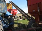 As explained in my previous post, picking ear corn is a 2 men job, one picking and the other hauling and unloading the gravity boxes. For a smooth and efficient operation, hauling and unloading is well organized. The NI Unisystem picker and the hauling tractors are equipped with quick attach see pic #1- a must. At the crib, everything is powered by orbit motor. The hauler gets the wagon in place to unload, connect 2 hydraulic hoses to the tractor and engage the hydraulic outlet. This runs an orbit motor at the end of the elevator. The elevator chain is pulled instead of being pushed. That way no more broken chain links. Before with the pto, not unusual to repair the chain every day. The elevator is moved along the crib by being loaded in a wagon with a very low bed see pic #3- .An orbit motor fix on the yoke of an old car differential is used to move forward or backward the wagon. The hydraulic selector installed on the side of the elevator see pic #2- transfer the oil flow to run this motor when needed. So unloading a 275 bu. box takes about 15 minutes and it is an effortless job.
