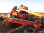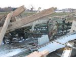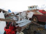 A John Deere steel wheel rake that I had on a planter trailer took a beating and looks to have a bent frame. My early (1965) 701 Uni-picker has a elevator bent over like a banana, a beam on it with the husking bed sprung toward the right and something fell on the corn head. Something cracked the glass on the operator door. The 325 NI picker in there has a beam on it and busted the support on the elevator.The elevator is bent also. The New Idea 402 hayrake that our FFA repainted and rebuilt in the school ag shop this past year has beams laying all over it. Hadn't even raked any hay with it yet since rebuild.