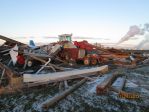 A barn 2 miles west of where I live that I rent where I kept equipment was like a parachute and the wind came through from the southwest and the wind lifted it up, broke the posts off and took it down, in the process dumping beams and debris over equipment I had stored in there. I could not believe it, I drove by the barn last Sunday night and it was completely gone!