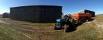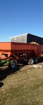 I've been wanting to post some pics of corncribs that we have on our farm. My Dad built the first one and I had the second one built. They hold about 2000 bushels a piece. Since we store the corn on a concrete floor we try to pick it pretty dry and sometimes we end up with more shelling of the corn then what is ideal but it is sure nice when you can load a gravity bed in about 10 minutes. I apologize for the pics they are from my new phone, I don't know how to rotate them if someone knows how please tell me!