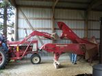 If you do a search on this forum, someone in the past posted some photos of loading an Oliver mounted picker. The were doing it similar to Charlie's pictures above but they used a chain or strap wrapped around each elevator and attached to the back of the loader bucket. I tried this earlier this winter with a New Idea picker I had junked out and was hauling to the scrap yard anyway. I figured if it didn't work or I wrecked it there would be no loss. It worked really slick! Next time I bring a picker home, that is how we will load it.
